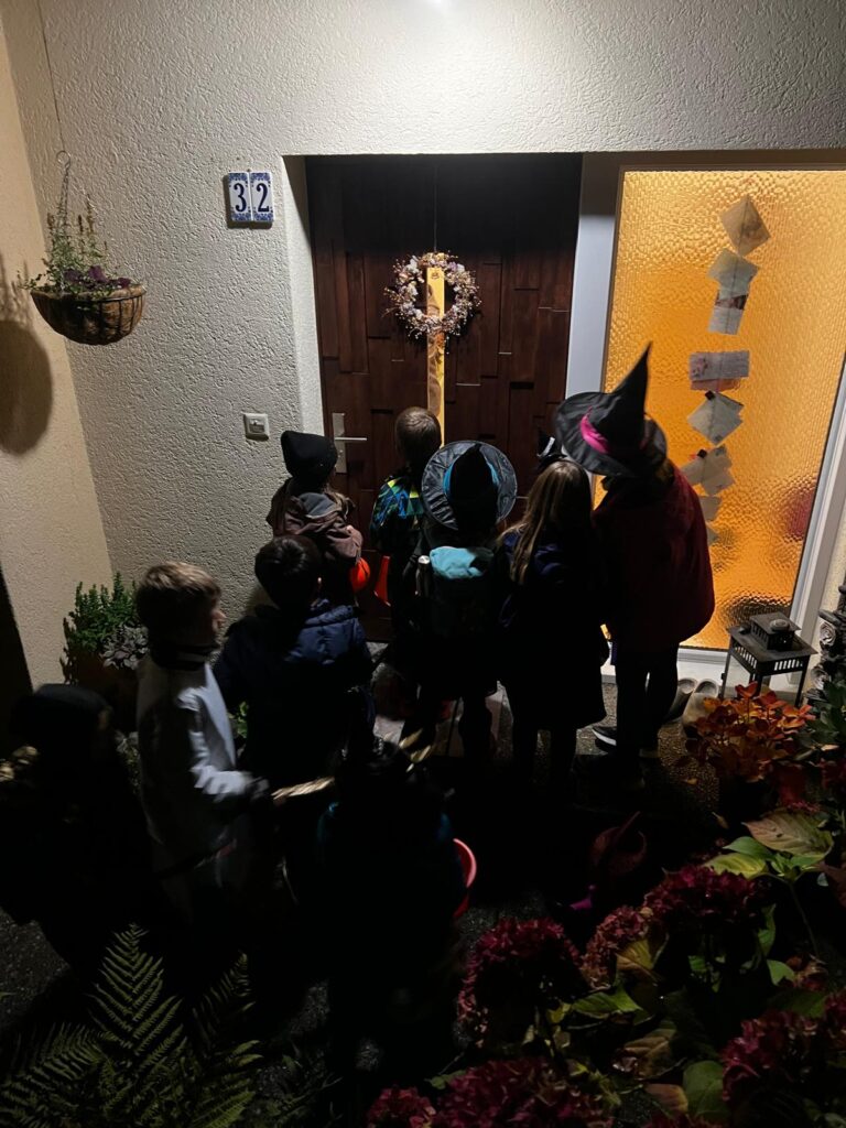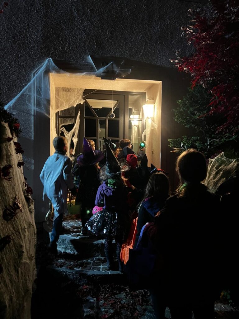 Ganz nach dem Motto „Süsses oder Saures“ machten wir uns anschliessend gemeinsam auf den Weg durch Wernetshausen. Von Haus zu Haus zogen die Kinder, klingelten an den Türen und riefen laut ihren Halloween-Spruch. Die Anwohner waren nicht nur erstaunt über unsere grosse Gruppe, sie freuten sich auch sehr über die vielen verkleideten Besucher. So sammelten die Kinder auf ihrer Tour zahlreiche Süssigkeiten und hatten sichtlich grossen Spass dabei.